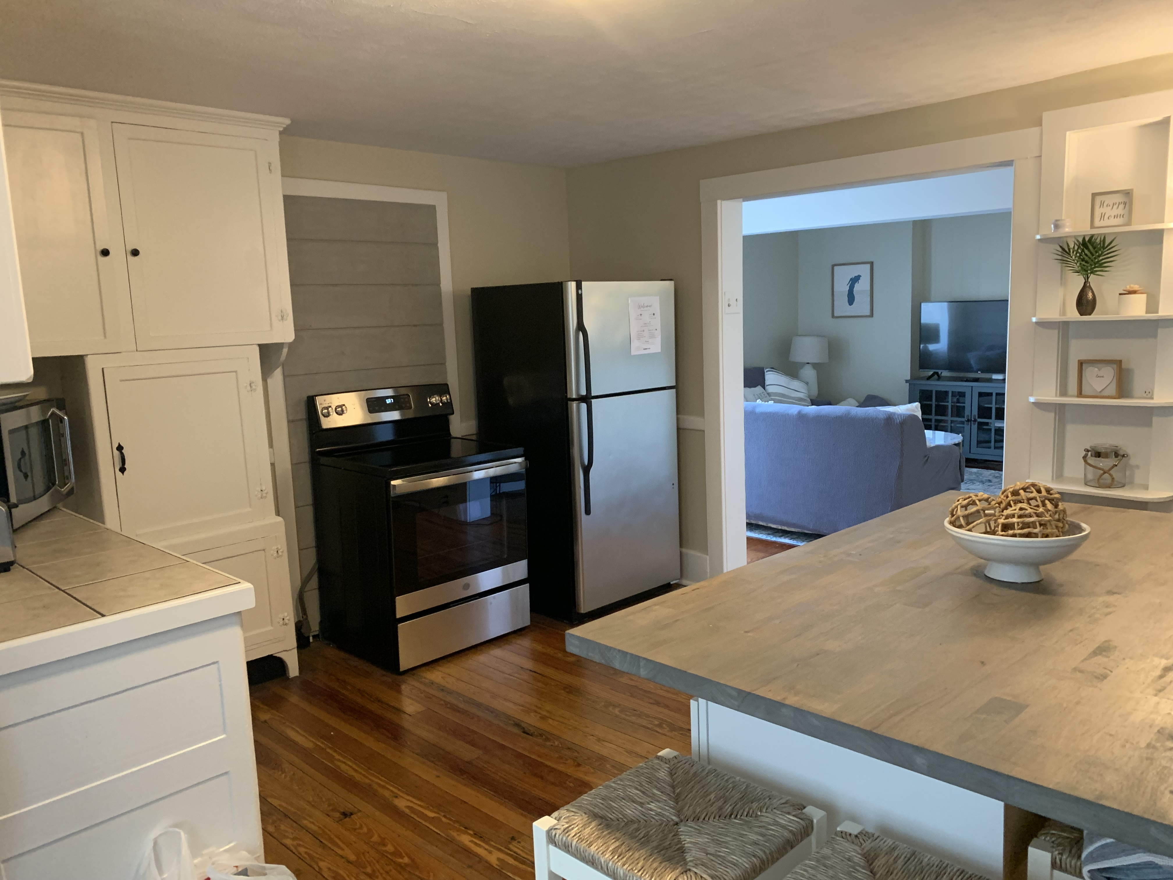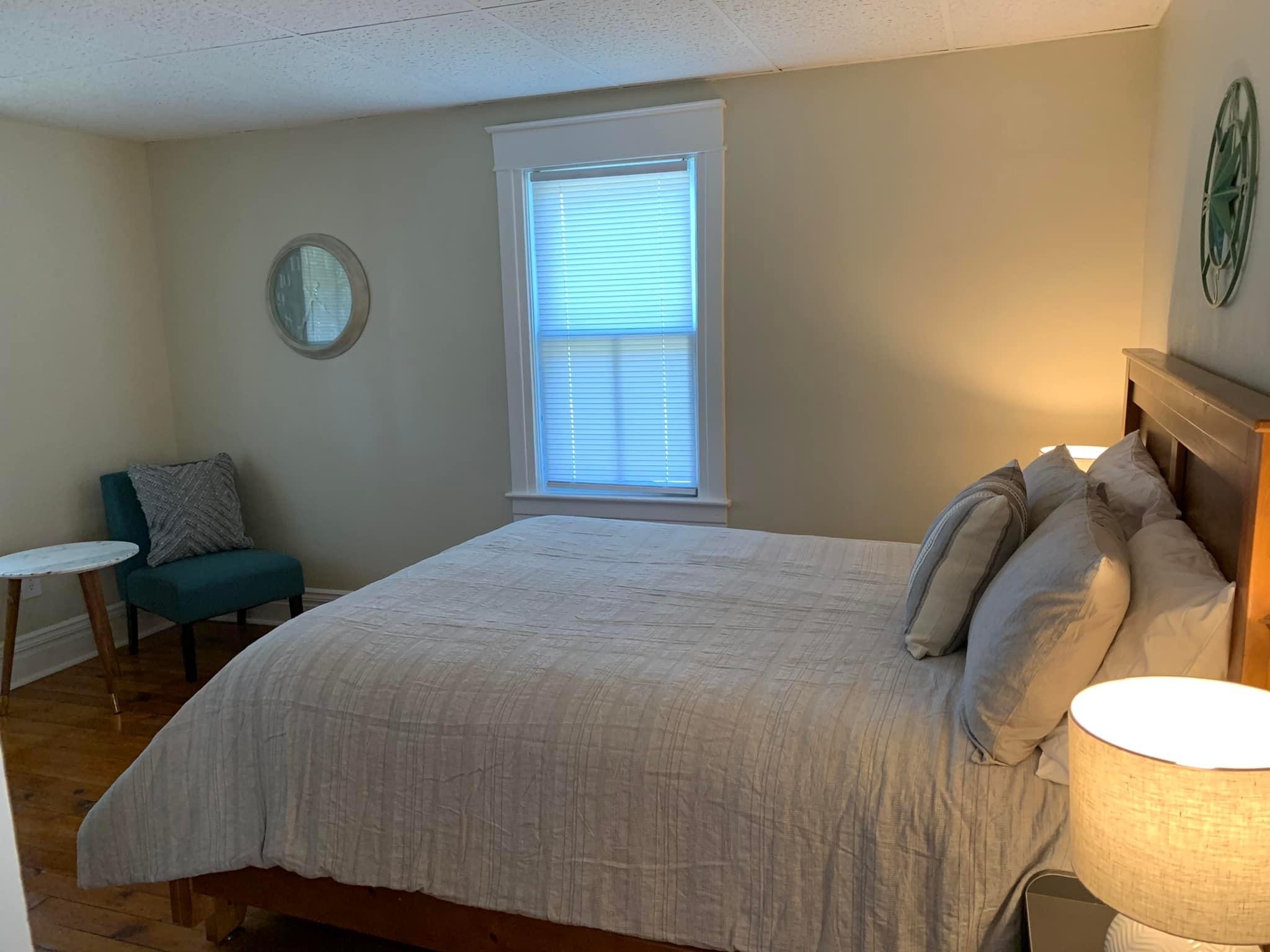 The Lighthouse is the entire first floor of the house and has 3 bedrooms and 1 bathroom. Bedroom 1 contains a queen, bedroom 2 contains a queen, and bedroom 3 contains a twin over full bunk bed; the unit sleeps 7 comfortably. Enjoy the charm of the original hardwood floors throughout and the relaxing screened in porch in this unit. A washer and dryer are included.